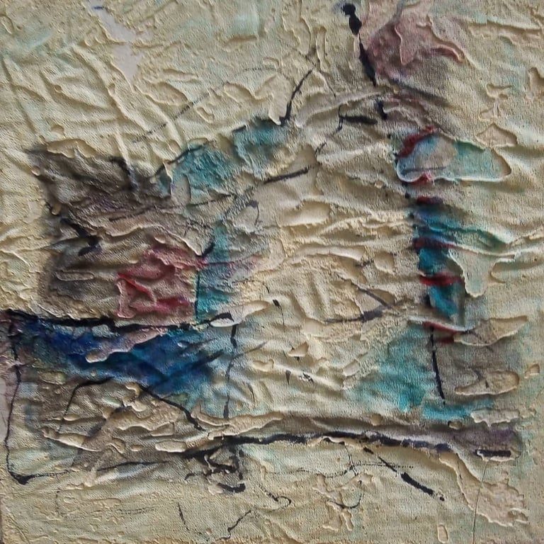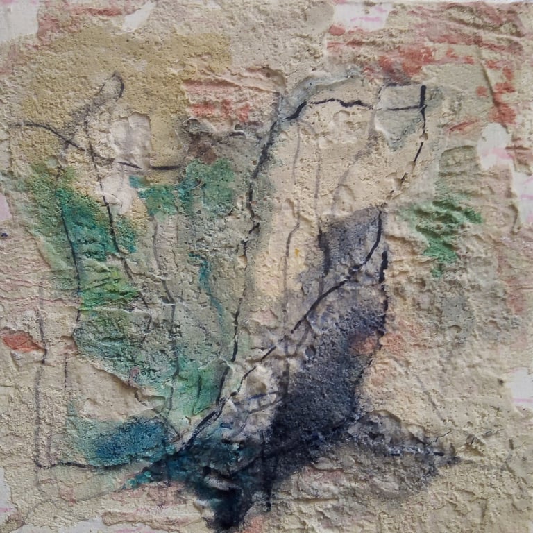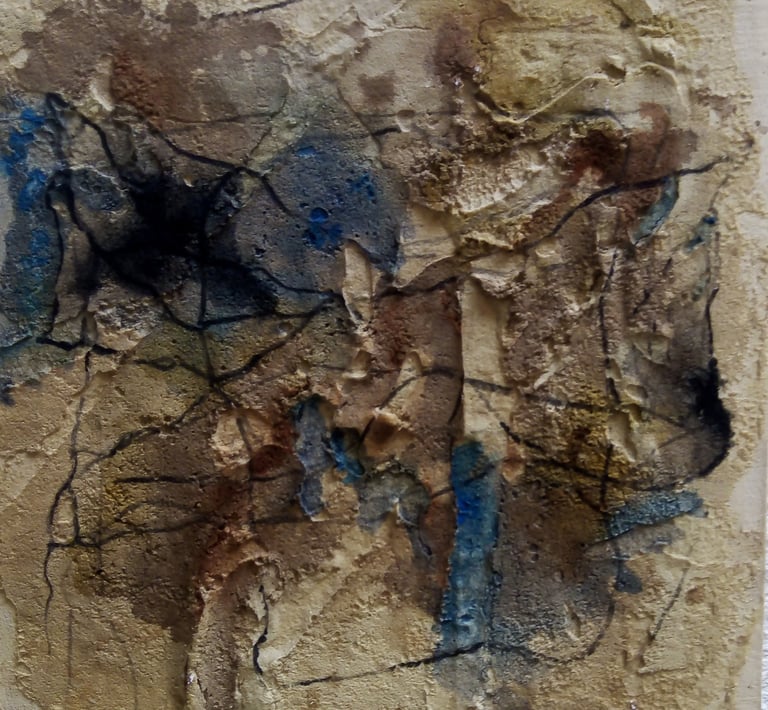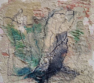 I looked for details in the destruction to make it appear elegant and far from the cruelty of war. I focused on studying the lines and symbols that represent electrical wires that were damaged by the war. I searched through reimaginings and re- imaginings of objects, adding touches of blue to simulate water seeping in and interfering with the clay soil from which old informal homes were made. Also, I added some cracks on the walls after heavy tremors and shelling of residential buildings